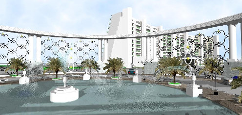 Entrance with hotel in background